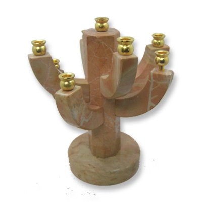 Made from sand colored Jerusalem stone with an earthy tree-like branching design. This elegant candle holder will become one of your family's most precious keepsakes and bring to mind many joyous and loving memories.
